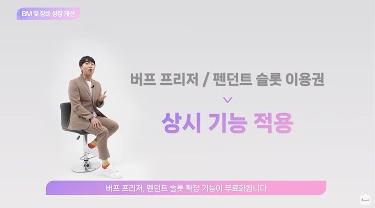 이외에도 버프 프리저, 펜던트 슬롯 이용권이 무료화된다. 주문서 강화 시스템의 허들도 낮아지는데, 주문의 흔적에 ‘순백의 주문서 100%’, ‘아크 이노센트/이노센트 100% 주문서’가 추가된다.