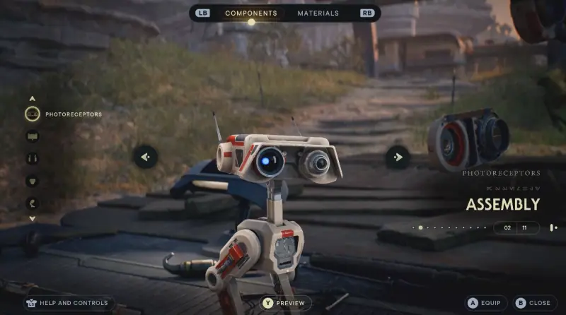 커스터마이징은 거기서 끝나지 않습니다. 귀염둥이 BD-1의 전반적인 색상 스킨만 바꿀 수 있었던 전작과 달리, 이번에는 머리와 다리, 안테나 등 여러 파츠를 조합해 나만의 드로이드를 만들 수도 있습니다. 총 다섯 가지 파츠로 드로이드의 모습을 조립한 다음 마음에 드는 마감재와 색상을 고르는 형태로 확장되어, 주인공만큼이나 개성 있는 BD-1의 모습을 기대해볼 수 있겠습니다.
