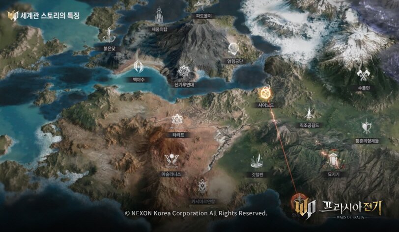 프라시아 전기 속 세계관에는 수십 개에 달하는 파벌과 수만 가지의 설정이 존재하며, 이는 프라시아 전기의 스토리와 게임 플레이의 몰입감을 높여주는 요소로 활용된다. ‘인간 연합과 엘프의 대립’이라는 하나의 핵심 서사 아래에 각 지역마다 특색 있는 외형과 다양한 갈등 요소를 지닌 NPC가 더해져 입체적인 스토리가 완성됐다.