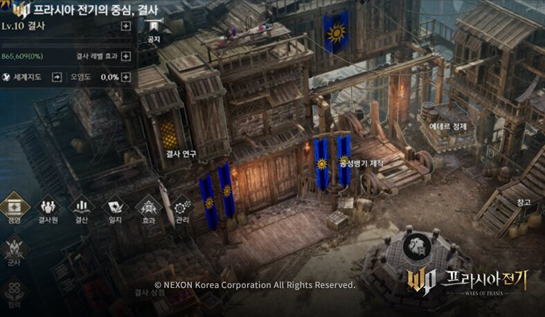 다른 결사원들과 함께 즐기는 다양한 결사 콘텐츠는 프라시아 전기에서 빼놓을 수 없는 재미 포인트가 된다. 결사 캠프에서 연구를 통해 결사에 속한 모든 결사원의 능력치를 높일 수 있고, 투석기나 교량전차 같은 공성병기를 제작하는 것도 가능하다. 넥슨은 전투를 제외한 모든 결사 내 활동은 동일한 기여도를 가지고 있으며, 전투 외에도 다양한 방식으로 결사에 일조할 수 있으니 자신만의 역할을 찾아 수행하는 것이 가장 중요하다고 설명했다.