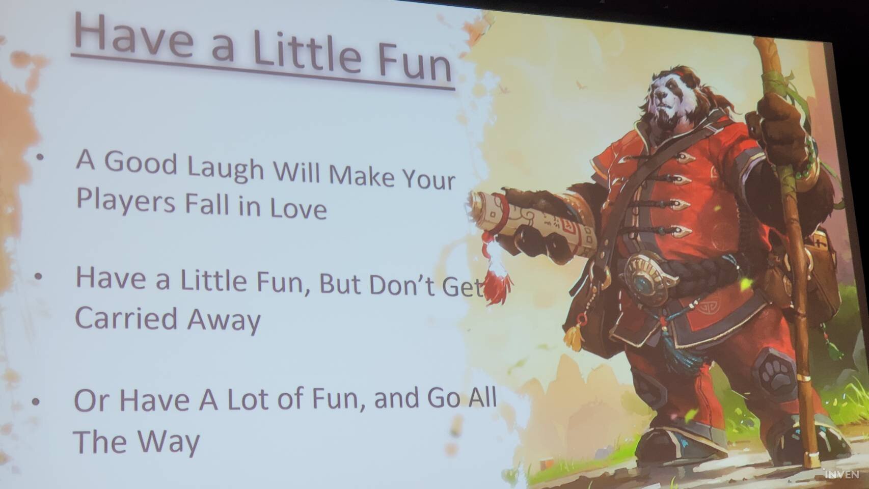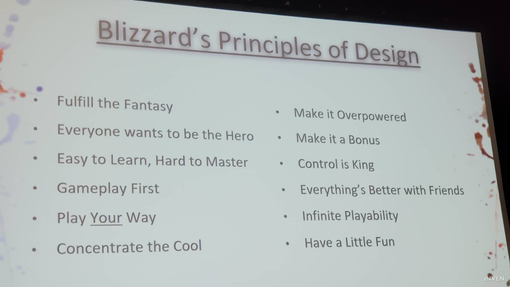 앨런 애덤의 강연은 여기까지 이어졌다. 이날 그가 말한 블리자드의 기초 개발 철학은 총 12가지. 이는 어떤 특정 게임이 아닌, 블리자드의 모든 게임이 개발됨에 있어 도입되는 철학이며, 나아가 지금의 블리자드다움을 만든 비결이라 할 수 있었다.