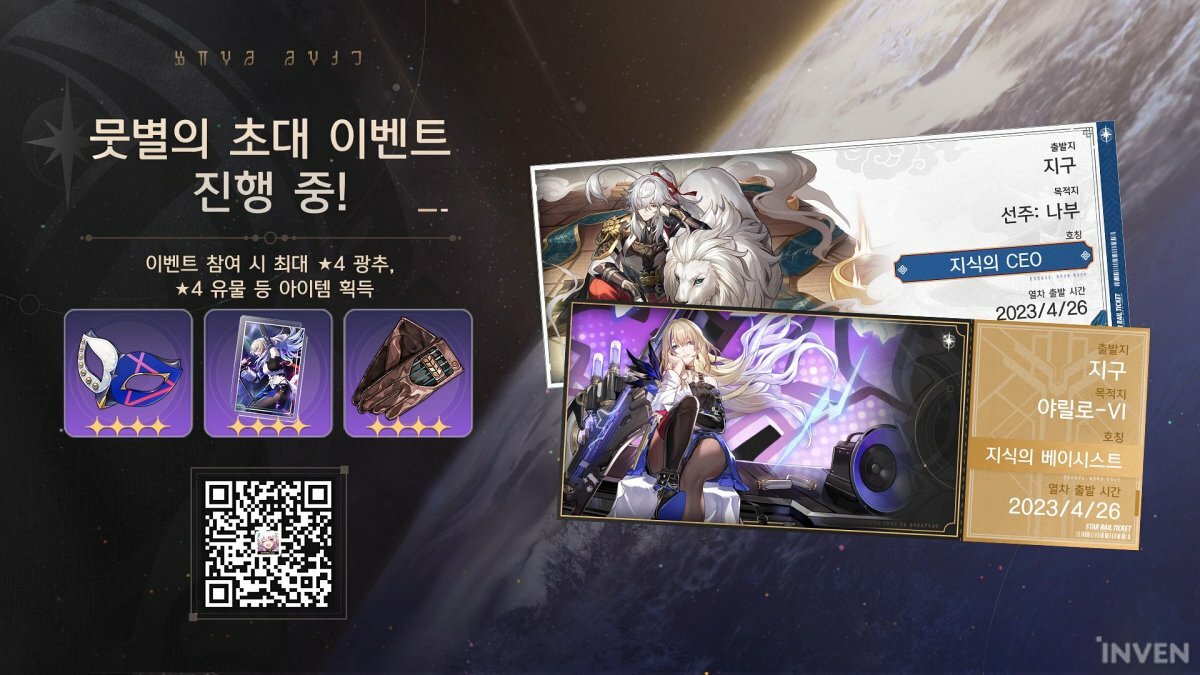 ‘초행길 워프’는 10연차 워프만 가능하지만 20% 할인 혜택이 주어지며 최대 50회 참여할 수 있다. 이 50회 안에는 1개 이상의 ★5 캐릭터를 반드시 획득할 수 있다. 20% 할인 혜택에 최대 40장의 ‘별의 궤도 티켓’을 소모하면 ★5 캐릭터를 반드시 얻는 셈이다. 이 외에도 뭇별의 초대 웹 이벤트로 승차권을 직접 만들어 공유할 수도 있다. 류웨이 대표는 자신이 줄곧 애정을 나타낸 히메코를 사용해 승차권을 꾸몄다.