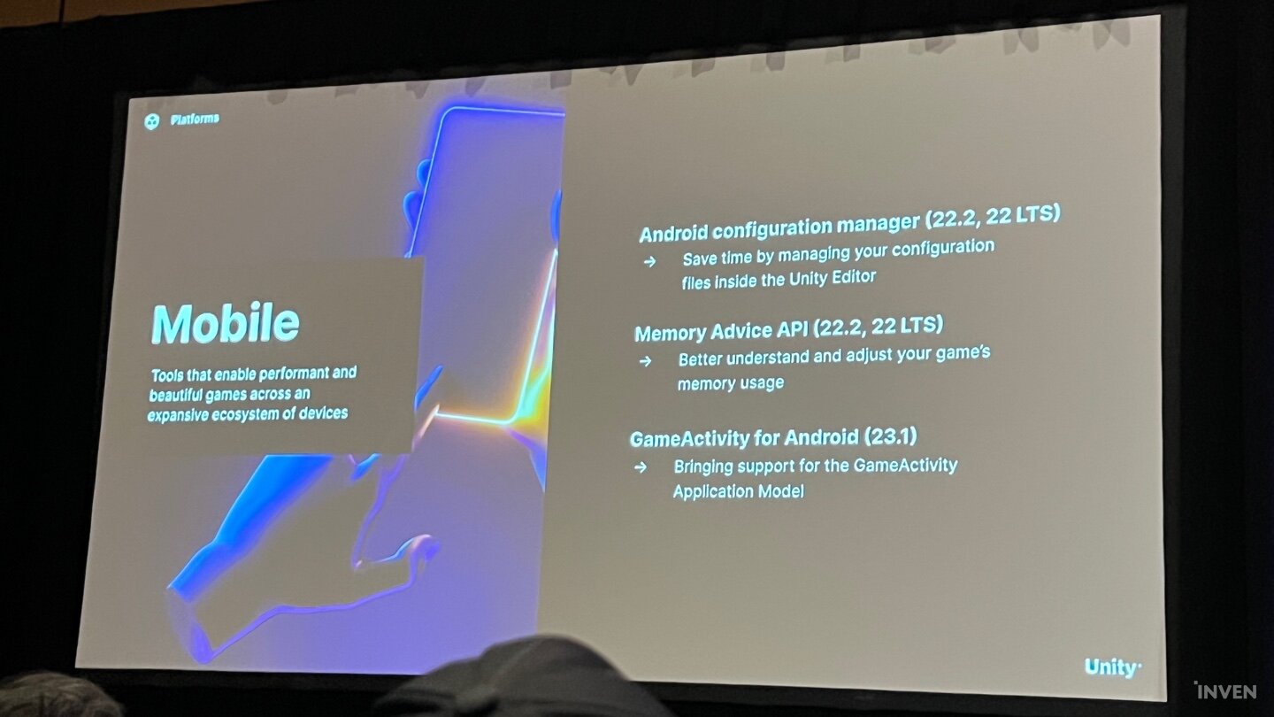 유니티 2023에서는 최신 기술뿐만 아니라 확장성을 위한 여러 기능들이 도입된다. 타라 렉시스 매니저는 그간 개발자들이 유니티의 안드로이드 호환성에 대해서 여러 가지로 피드백을 했다고 밝히면서 안드로이드 컨피겨레이션 매니저와 메모리 어드바이스 API, 게임액티비티 포 안드로이드를 유니티 2022LTS 버전과 2023 테크스트림에서 점진적으로 적용할 것이라고 설명했다.