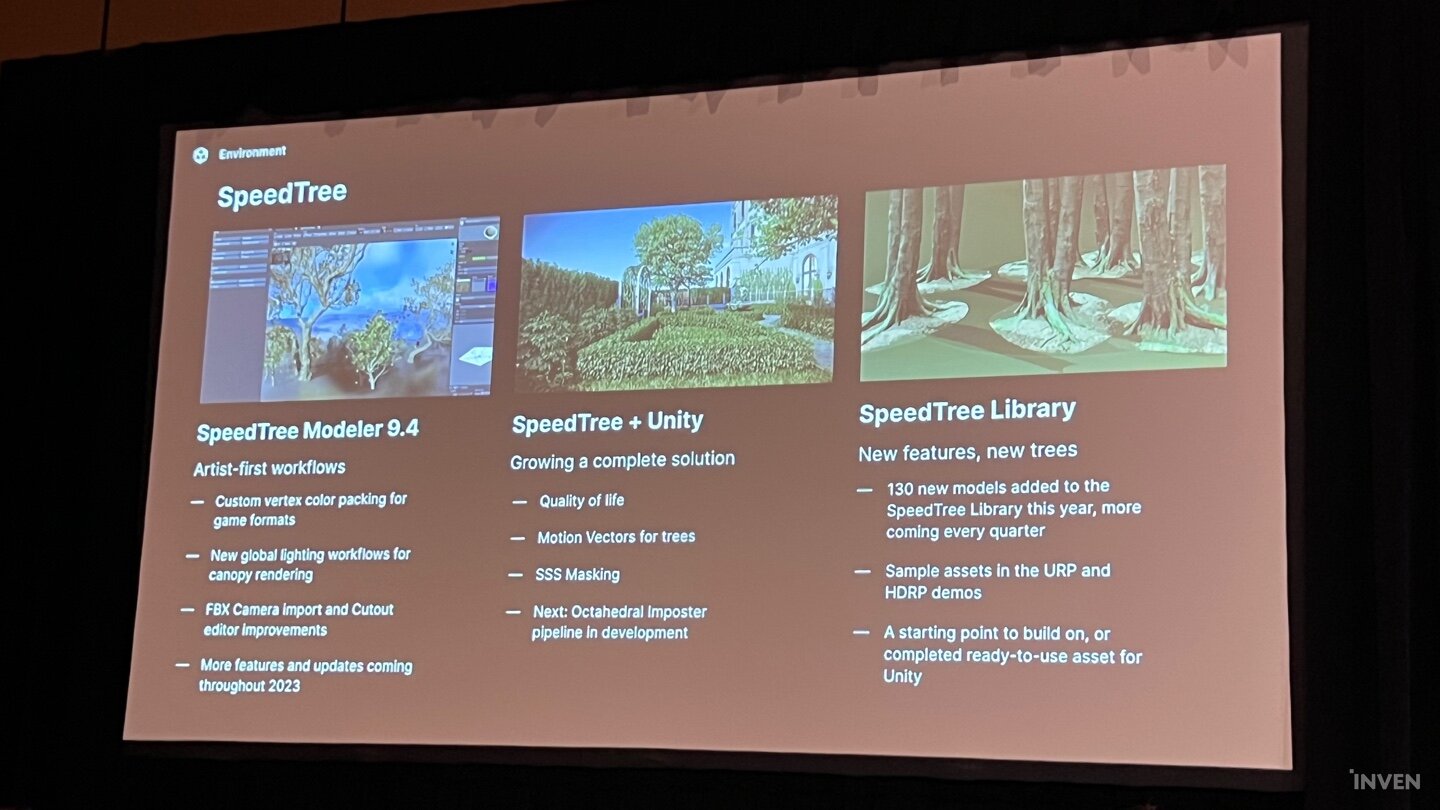 이밖에도 수면에 대한 표현과 식생 관련 모델링 및 솔루션 전문 업체인 스피드 트리를 인수한 유니티는 유니티 엔진을 사용하는 개발자를 위해 좀 더 현실적이면서 새로운 식생 구현 관련 기능을 선보일 예정이다. 디지털 휴먼이나 버추얼 휴면, 가상의 캐릭터 관련된 부분은 최근 인수를 완료한 ‘지바 다이나믹스’의 AI 기반의 다양한 디지털 휴먼 기술을 토대로 구축해나갈 전망이다.