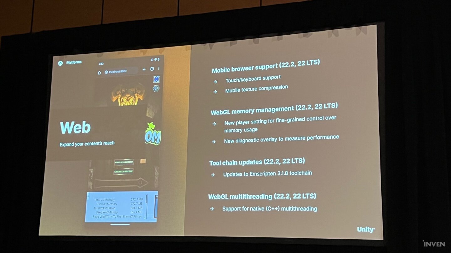 또한 콘솔, PC, 웹 등 다른 플랫폼에서도 최적화를 위한 여러 기능들이 발표됐다. 크롬OS 빌드 관련 기능 개선 및 윈도우 PC를 위한 Arm 지원, HTML5 등 웹게임이 모바일에서도 터치스크린과 키보드 지원이 가능하도록 확장하는 것까지 개발자들이 여러 플랫폼에서 자신의 게임을 유저들에게 최상의 상태로 선보일 수 있도록 보완한 것이다.
