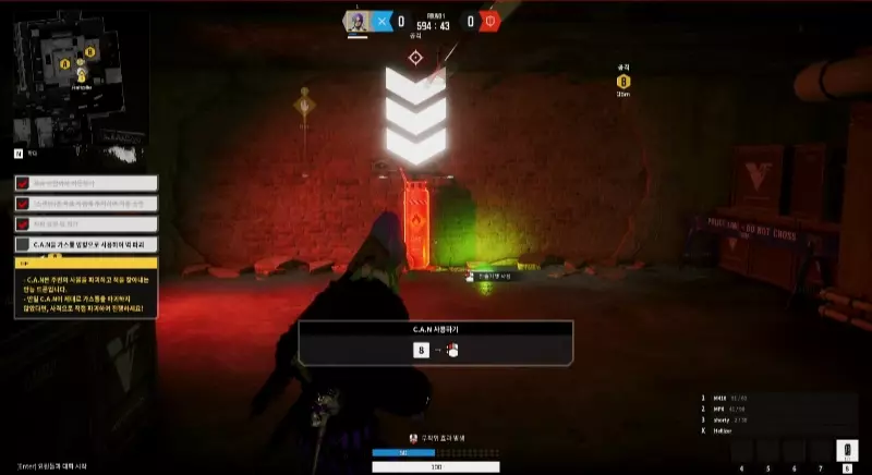 기존 맵에서 이를 어떻게 풀어내고자 패치를 적용했는지는 시연 단계에서는 확인할 수 없었다. 대신 슈팅 게임 유저라면 누구에게나 친숙한 ‘팀 데스 매치’를 추가해서 베일드 엑스퍼트의 슈팅 감각과 맵 그리고 각 요원의 고유 렙톤과 특징을 복잡한 절차 없이 익힐 수 있게끔 했다. 팀 데스 매치에서도 자기장이 발생하는 만큼, 이를 유의해서 플레이할 필요가 있었다.