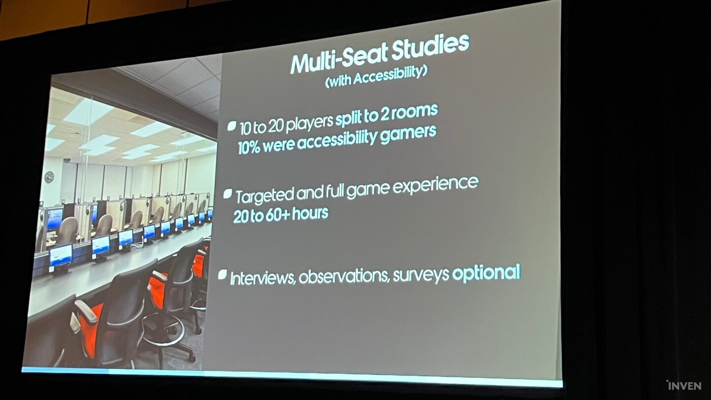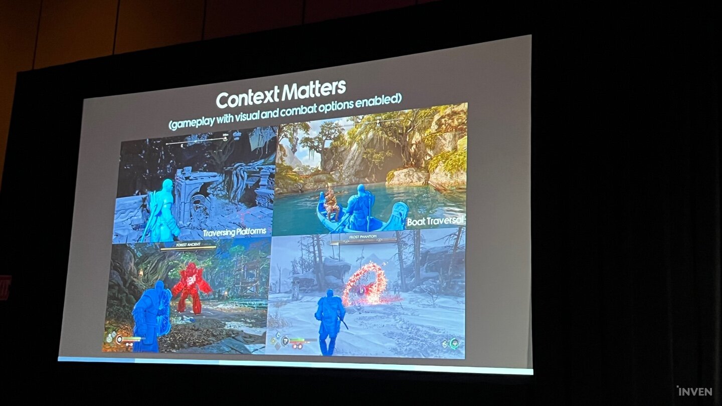 파시티 수석 연구원은 ‘접근성’ 관련 옵션에 대해 조언할 때 이 부분이 단순히 시청각에 문제가 있는 것에만 한정된 것이 아니라는 점을 강조했다. 일반적으로 시청각 위주로 강조되기 때문에 간과하기 쉽지만, 시청각뿐만 아니라 거동이 불편하거나 게임 자체가 처음이라서 기존 유저들은 쉽게 하는 락온이나 토글링 등 조작법이 어려운 경우도 있기 때문이다. 또한 일부 접근성 옵션이 서로 상충하거나 의도치 않은 장벽을 만들어낸다는 점도 유의할 필요가 있었다.