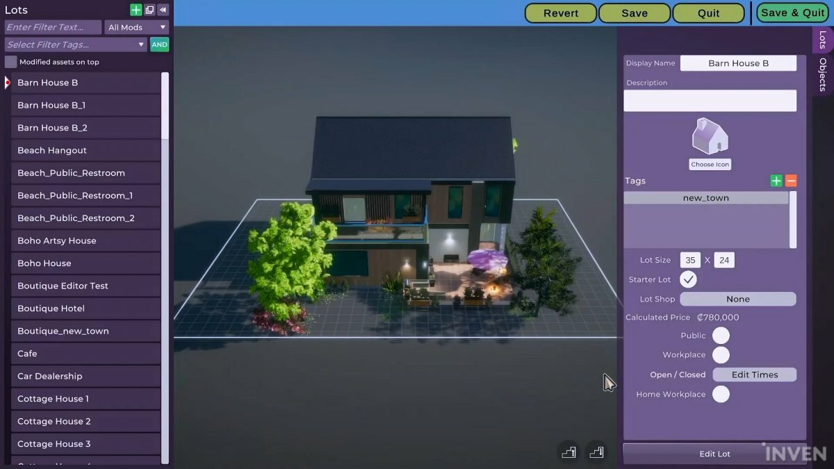 또 다른 특징은 다양한 오브젝트와 작동 스크립트를 편집하는 기능이다. 스크립트 변경은 오브젝트에 적용되는 명령을 변경할 수 있는 기능이다. 예를 들어 꽃이 핀 덤불을 화장실로 사용하는 스크립트를 추가하면 실제 게임 안에서 캐릭터는 꽃이 핀 덤불 안에서 볼일을 본다.