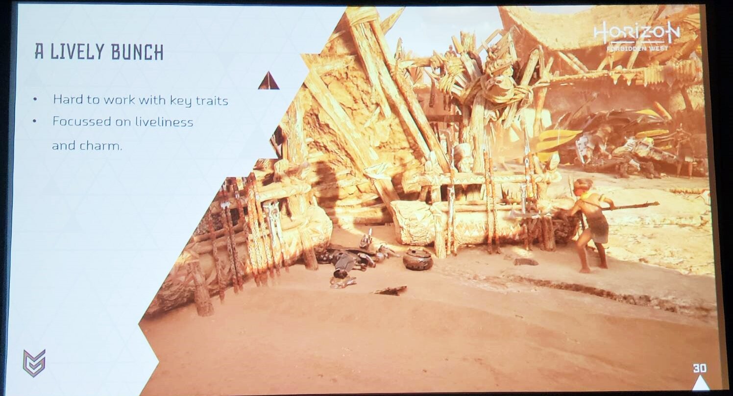 이들이 주된 업무를 하는 분야는 세 번째 요소. 다양한 문화를 지닌 여러 부족과, 게임 내에서 거점으로 쓰이는 ‘정착지’를 보다 그럴싸하고 현실적으로 만들어내는 것이다. 이를 위해, 그들은 ‘호라이즌: 포비든 웨스트’를 개발하기 전, 그들이 생각하는 ‘살아있는 세계’와 그 살아있는 세계에서 살아가야 할 부족민들에 대한 정의를 먼저 내렸다.
