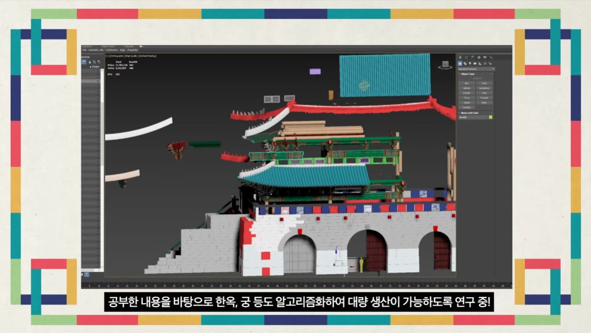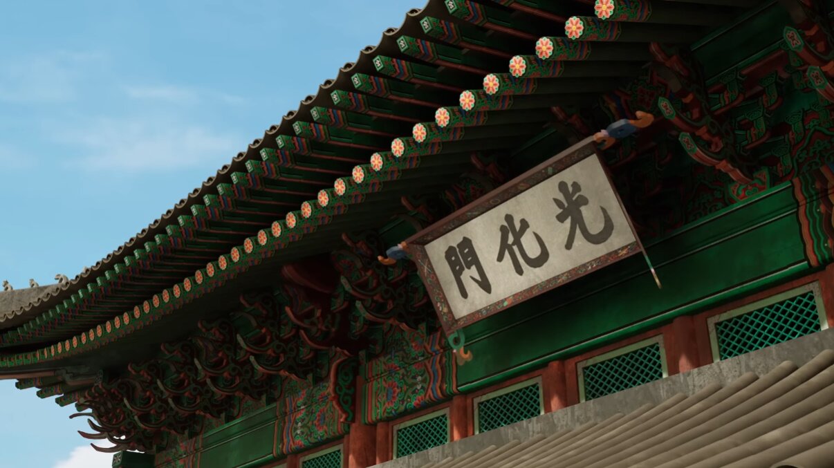 경복궁, 광화문 같은 우리나라 전통 건축물은 정말 심혈을 기울여서 만들고 있는 부분입니다. 이건 단순히 겉모습만 만들지 않고, 실제 한옥 건축 공법과 설계도를 공부해서 공법에 사용되는 부품을 하나하나 고퀄리티로 만들고 조립하는 형태로 알고리즘을 구축했어요. 그걸 여러 차례 개선해서 지금은 훨씬 더 높은 퀄리티로 만들 수 있게 됐죠.