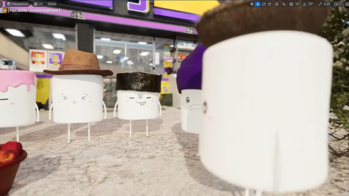 사실 캐릭터의 움직임이나 활동 자체도 무언가 소소한 일상적인 것 위주로 생각을 해두고 있습니다. 예를 들자면 택배 박스를 머리 위에 얹고 걸어가거나 꽃배달을 하고, 벽을 타고 오르는 것 등이죠. 그 외에도 특정 사물로 변신하는 이색적인 게임플레이 요소도 많이 기획은 하고 있어요. 사실 마시멜로로 고른 이유가, 이래저래 외형이 변형되고 또 캐릭터가 이상한 짓을 해도 딱히 외형적으로 괴이해보이거나 말이 안 될 정도로 터무니 없다거나 하진 않을 거라 생각해서였어요. 또 그렇게 말랑말랑하고 유연하게 외형이 이리저리 눌리고 하는 게 매력 포인트이지 않을까 싶었고요.