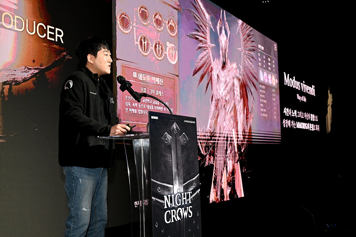 ㈜위메이드(대표 장현국)가 16일(목) 신작 <나이트 크로우> 미디어 쇼케이스 ‘When the Night comes’를 열고 핵심 콘텐츠를 공개했다. 매드엔진(공동대표 손면석, 이정욱)에서 개발 중인 <나이트 크로우>는 언리얼 엔진5 기반 크로스 플랫폼(모바일/PC) MMORPG로, 올 4월 출시 예정이다.