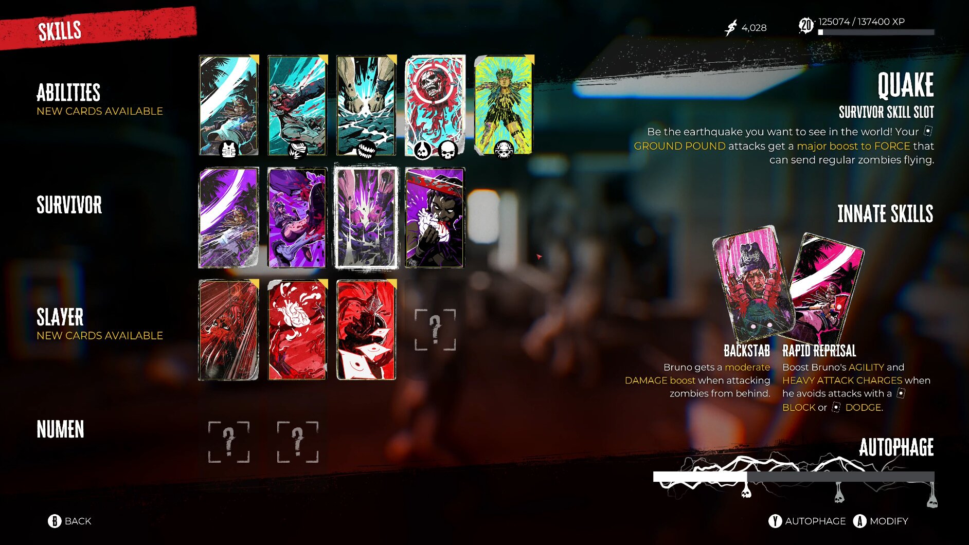 ‘스킬 카드’는 데드 아일랜드2에서 가장 핵심적인 성장 시스템 중 하나로, 각 카드들에 적힌 특수한 효과를 사용해 나만의 캐릭터, 나만의 전투 방식을 정립하는 형태로 사용됩니다. 총 네 개의 영역으로 나뉘어진 카드 슬롯은 각각 주인공 캐릭터에게 새로운 기술과 효과를 부여하며, 언제든지 원하는 카드로 바꿔 플레이스타일을 바꿀 수도 있죠.