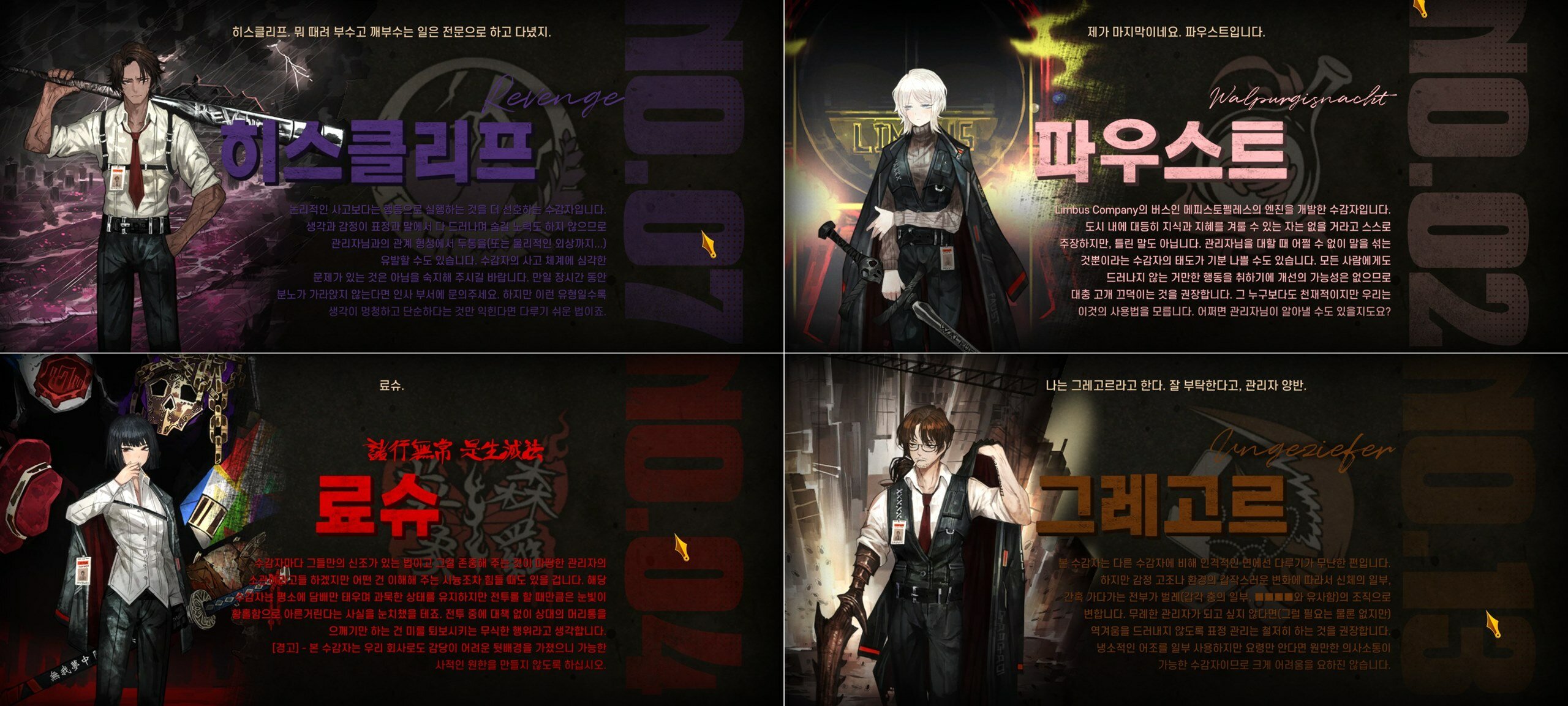 현재까지 구성된 3장의 스토리는 장마다 수감자들의 과거와 사건이 얽힌 스테이지로 구성된다. 이를 통해서 단테는 림버스 컴퍼니의 정체성의 일부를 알아가고, 대척점에 서 있는 적들을 만나게 되며 수감자들의 성격과 개성을 계속해서 볼 수 있다. 각 수감자들은 관리자인 단테와 연결되어, 시계가 째깍거리는 소리 밖에 낼 수 없는 단테와 의사소통을 할 수 있다. 또한, 수감자들이 사망해도 단테는 시간을 돌려서 그들의 고통을 느낀 뒤 부활/회복을 시킬 수 있는 배경을 갖게 된다.
