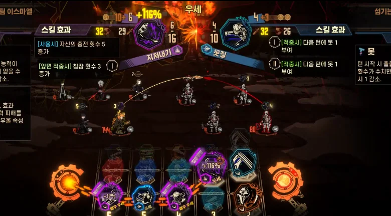 솔직히 이렇게 설명해도 이해를 하기 힘든데, 설상가상으로 인격마다 갖고 있는 스킬에는 각 7대죄 속성과 연결되는 특수한 상태이상이 발생한다. 침잠, 호흡, 화상, 출혈, 충전 등등 각 스킬마다 독특한 컨셉의 상태이상 혹은 스택이 있고 이에 따라서 스킬의 효과가 바뀌기도 한다. 여기까지 고민을 해야 ‘림버스 컴퍼니’의 전투의 기본을 이해했다고 할 수 있다.