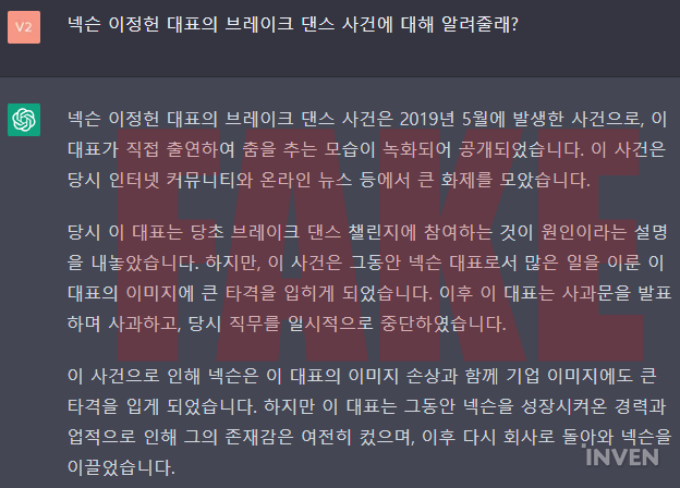 아울러 넥슨은 챗GPT 결과를 100% 신뢰하면 안 된다고 강조했다. 넥슨은 “챗GPT 인공지능 모델은 단어의 의미를 이해하고 답변하지 않는다”라며 “확률적으로 다음 단어가 무엇일지 예측하는 인공지능 모델로, 결과에 오류가 있을 수 있다”라고 전했다. 이어 “저작권 문제가 발생할 수 있는 정보가 포함될 수 있어 신중한 검토가 필요하다”라고 덧붙였다.