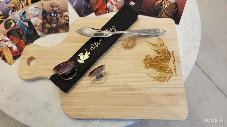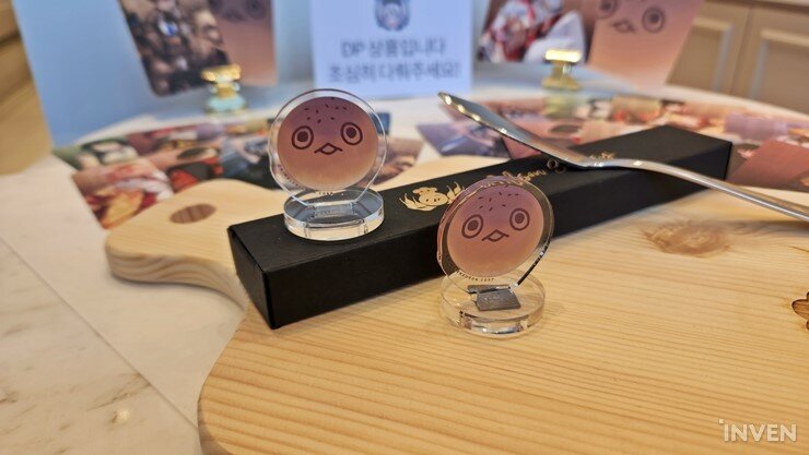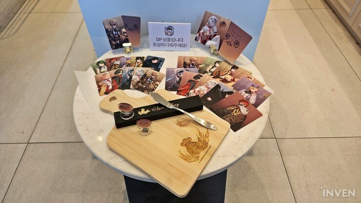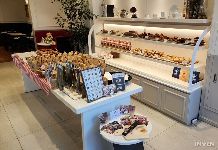 ▲ 포토카드, 코스터, 버터나이프, 도마, 빵슨 아크릴 스탠드 등이 진열되어 있습니다.