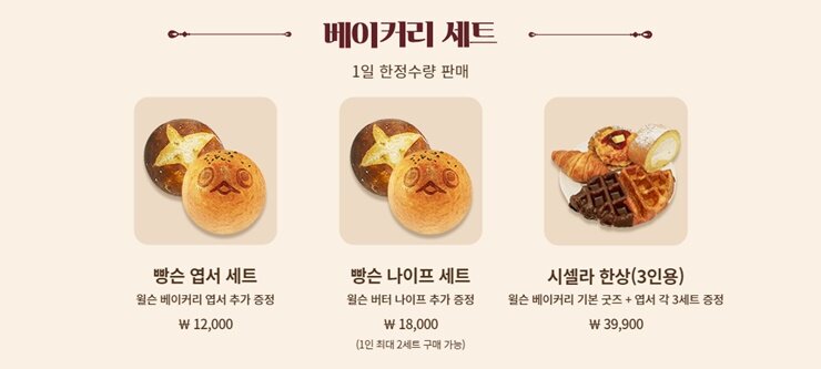 ▲ 윌슨 베이커리에서 판매하는 메뉴, 세트 메뉴는 수량이 한정되어 있습니다.