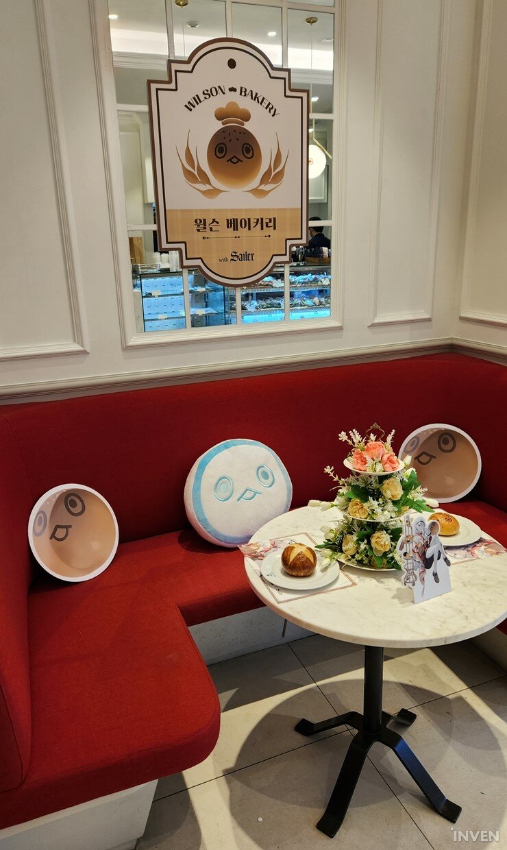 ▲ 내부로 들어가면 중앙에 윌슨 베이커리 한정 메뉴와 굿즈 실물을 볼 수 있습니다.