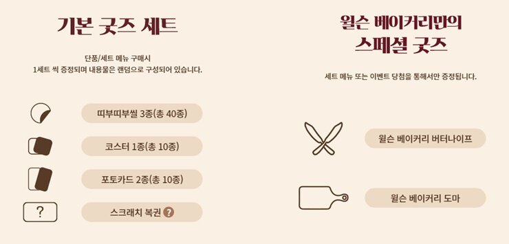 ▲ 메뉴 1개당 기본 굿즈 1세트를 증정하고, 도마의 경우 이벤트 당첨을 통해서만 받을 수 있습니다.