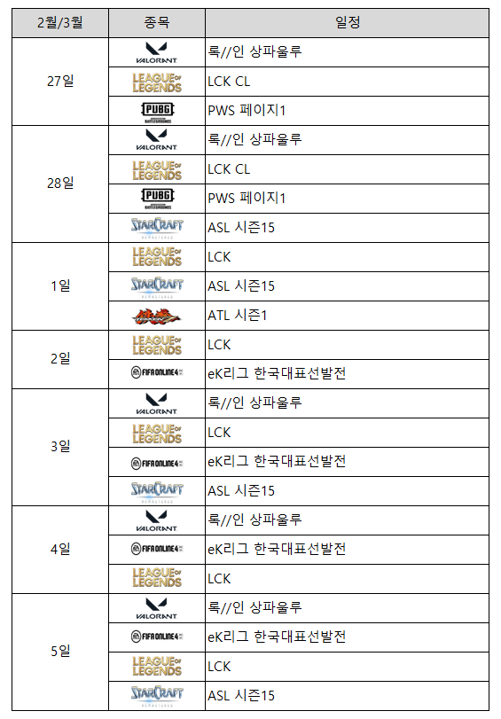 ■ 이 주의 e스포츠 일정