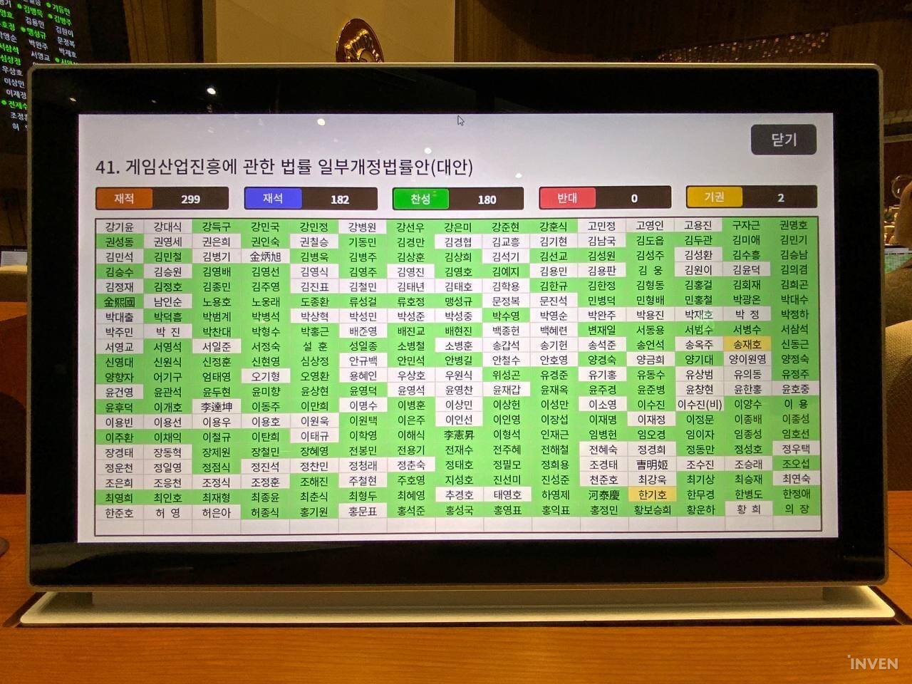 확률형 아이템 법제화를 담은 게임산업법 개정안이 제403회 국회(임시회) 제8차 본회의에서 국회의원 180인 찬성, 2인 기권으로 통과됐다.