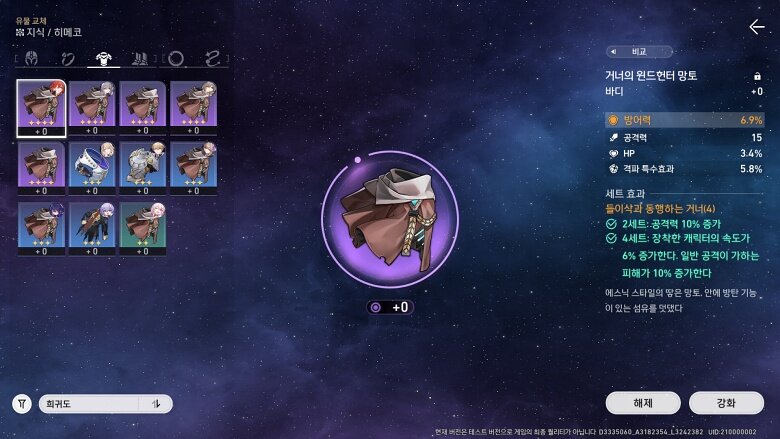 그렇지만 ‘유물’은 이야기가 달랐습니다. 자동 전투는 지원하지만 반복 전투는 지원하지 않고, 유닛 편성도 적 약점에 맞춰서 배치하지 않으면 상당히 애를 먹게끔 구성이 되어있었거든요. 원신의 성유물처럼 캐릭터의 스펙에 결정적인 역할을 하는 부분인 만큼 앞으로도 비중이 높아지고 반복 파밍하는 횟수도 많아질 텐데, 현재로서는 포지션이 좀 애매하다는 느낌이 들었습니다. 옵션 붙는 것도 어찌보면 원신과 유사하다보니 더더욱 그런 생각이 자리잡을 수밖에 없었고요.