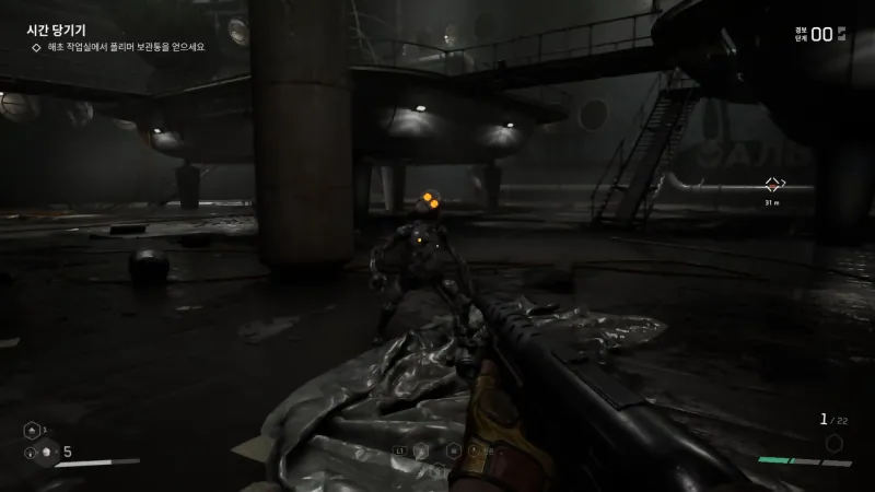 장비를 강화하기 위해 들러야 하는 실험실들 역시 마찬가지입니다. 살인 로봇들이 사실상 시설의 거의 모든 인간을 죽인 상황이니 생존자들이 넘치는 거까지는 바라지 않지만, 좀 더 매력적인 공간으로 풀 수 있지 않을까 하는 그런 아쉬움이 들었죠. 여러모로 드넓은 오픈필드를 낭비하고 있다는 생각이 강하게 들었습니다. 매력적인 세계관과 스토리 등을 오픈필드가 살리지 못한 모습이었죠.