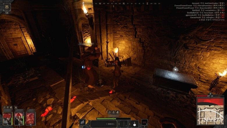 여기서는 다크 앤 다커의 느릿하면서도 상세한 전투가 큰 몫을 하지 않았나 싶다. 다크 앤 다커는 모든 행동이 느릿하다. 뛰기, 활시위 당기기, 칼 휘두르기 등 모든 것이 말이다. 에이펙스 레전드는 빠른 움직임과 진행 방식이 돋보인다면 다크 앤 다커는 전혀 다른 방식이다. 그래서 자칫 답답하다고 느낄 수 있지만, 그만큼 유입이 가볍게 시작하기엔 나쁘지 않다고도 볼 수 있다. 에이펙스 레전드나 PUBG를 보면 심리전과 전투의 간격은 물론 전투 시간도 수 초면 끝날 정도로 짧은 편이다.