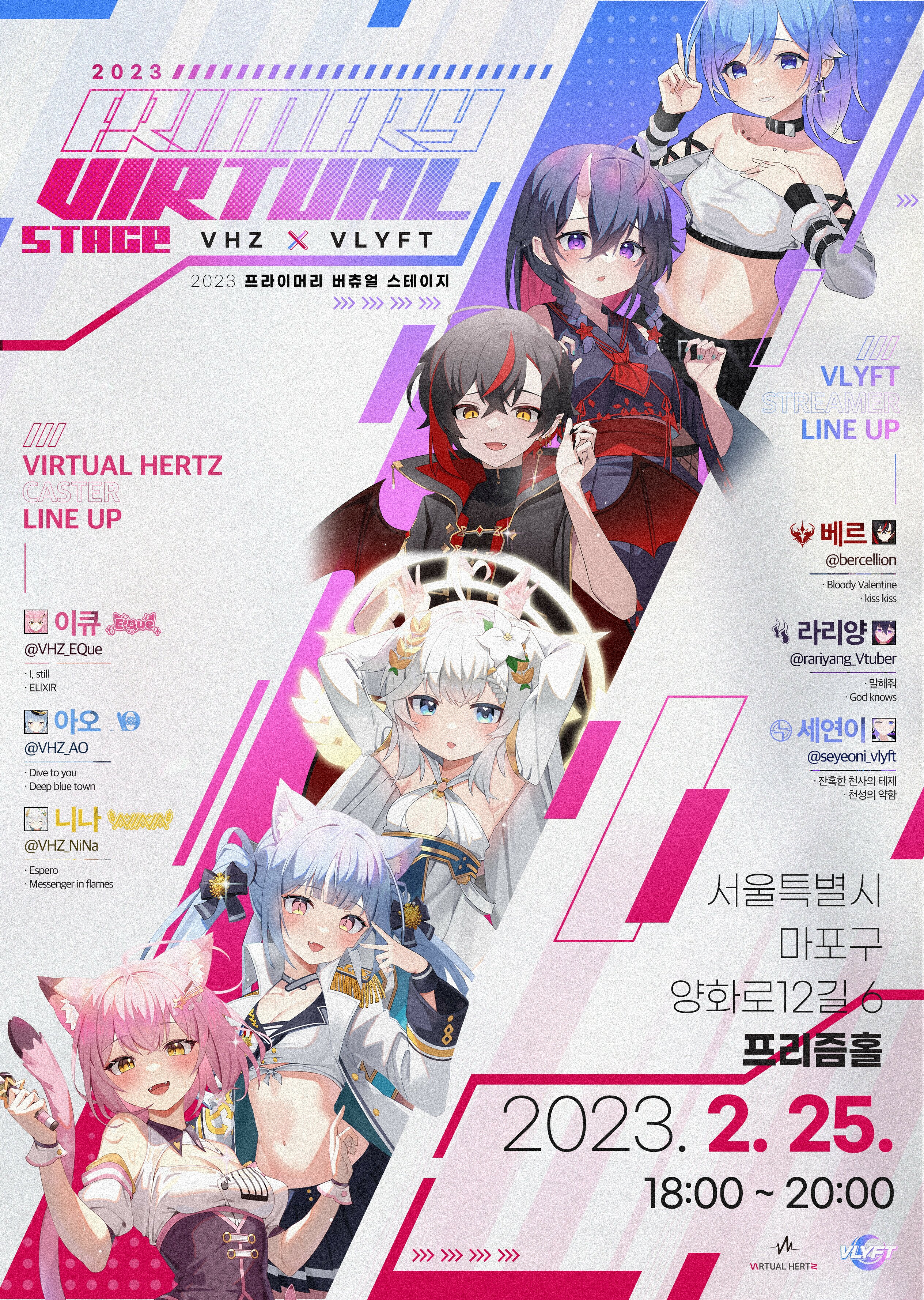 브이리프트(㈜브이넥서스)와 버추얼헤르츠(버추얼헤르츠 엔터테인먼트)는 금일(17일), 양사 버튜버 MCN 간 콜라보 콘서트인 ‘2023 프라이머리 버츄얼 스테이지, VIRTUAL HERTZ X VLYFT’를 오는 2월 25일, 홍대 프리즘홀에서 개최한다고 밝혔다.