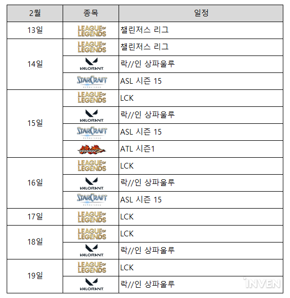 ■ 이 주의 e스포츠 일정