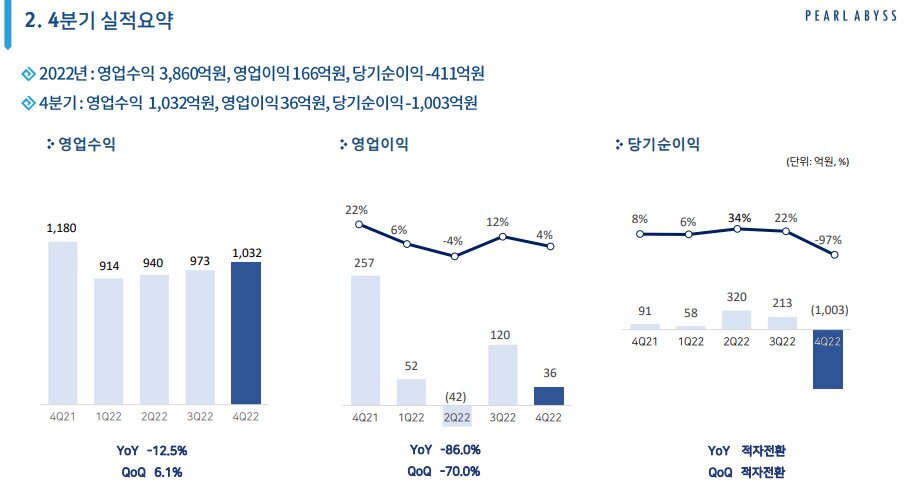 ■ 펄어비스 2022년 4분기 및 연간 실적 요약 및 신작 일정
