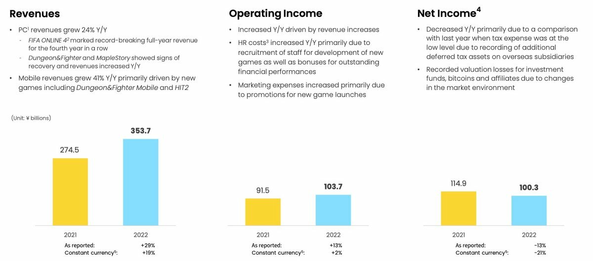 넥슨이 2022년 4분기, 연간 기준 역대 최고 매출을 기록했다.