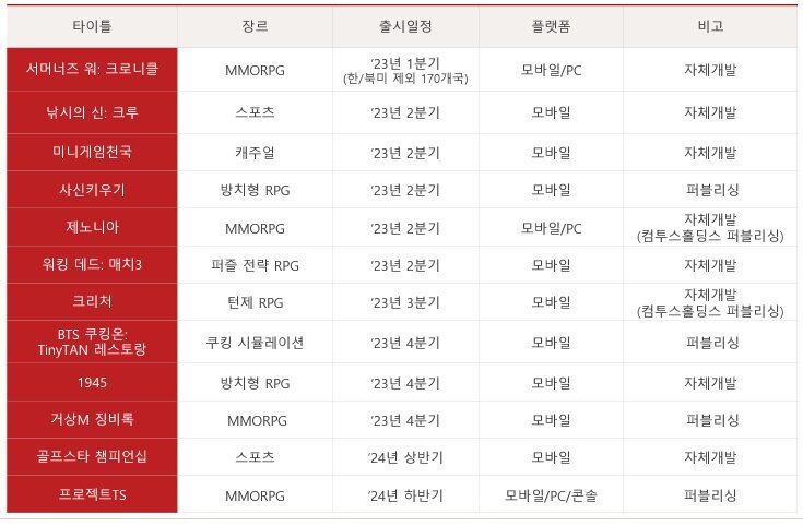 ■ 컴투스 2022년 4분기 및 연간 실적 요약, 신작 일정