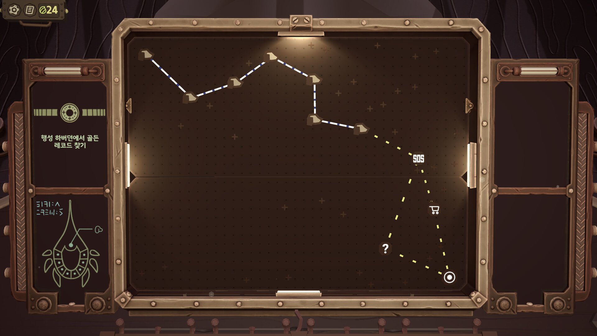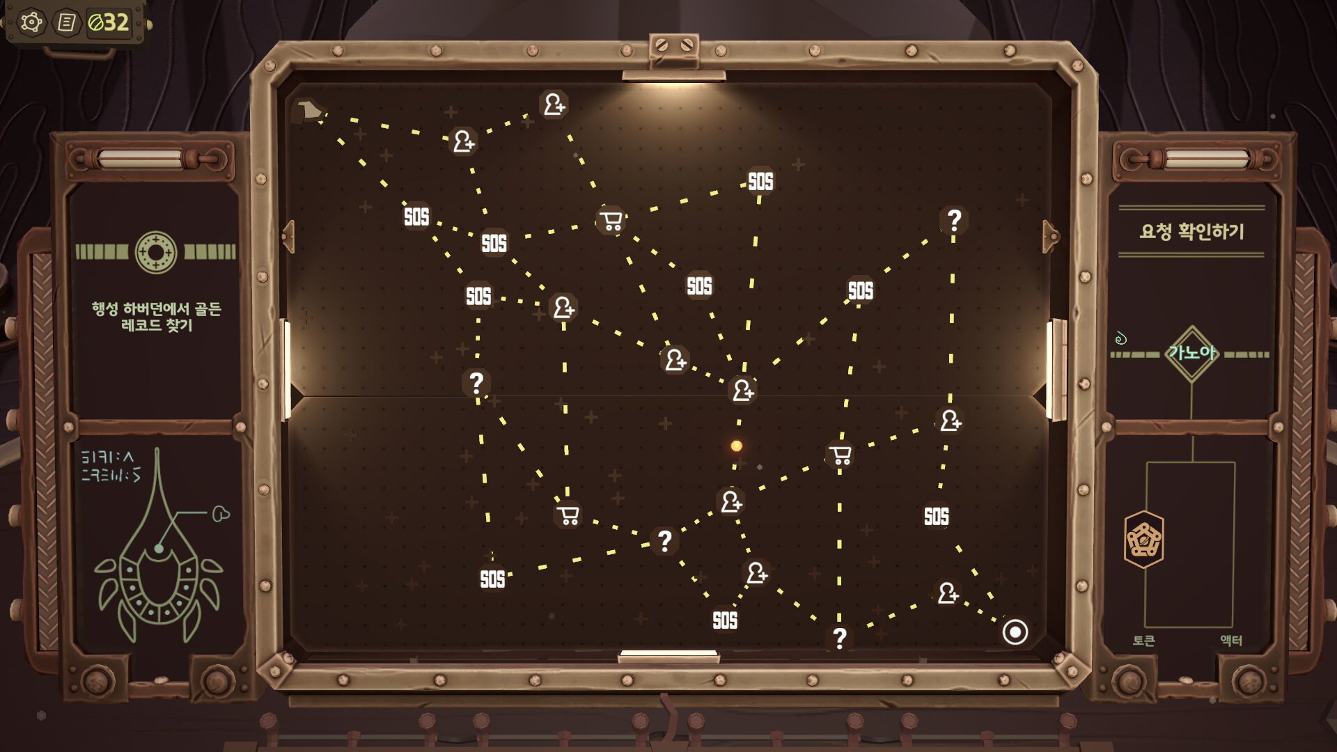 게임의 스테이지 구성에서 ‘골든 레코드’를 회수하는 것은 하나의 행성에서 치루는 보스전의 성격을 띄며, 플레이어는 여러 가지 노드로 구성된 길 중 하나를 선택하며 모험을 이어나가게 됩니다. 노드 중에는 동료를 영입하는 구간부터 누군가의 요청을 들어주는 일, 때로는 상점 등이 등장해 게임에 도움이 되는 아이템을 구매할 수도 있습니다.