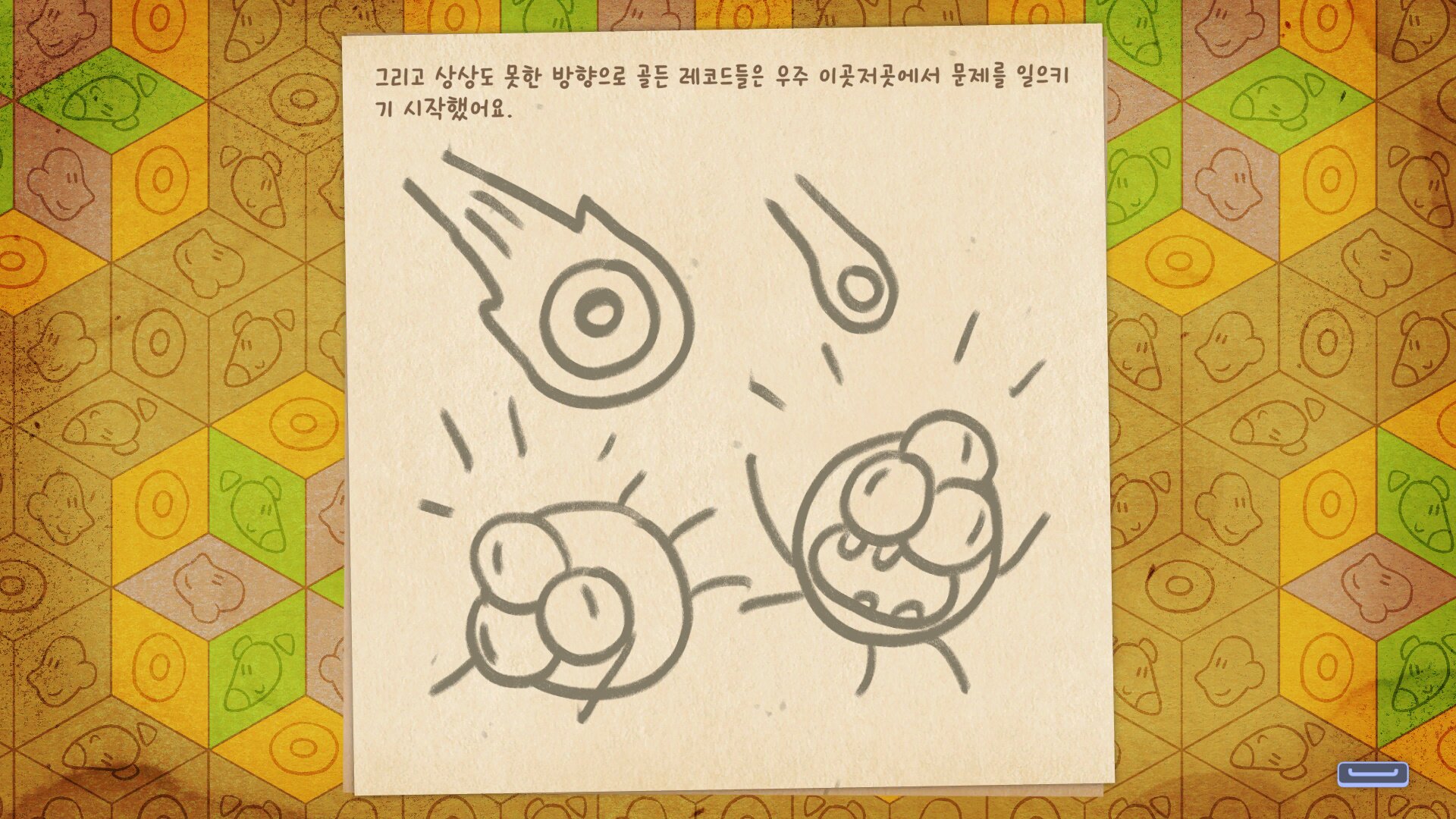 그렇다면 느닷없이 우주로 가게 된 강아지 리버는 어떻게 다른 외계인들과 의사소통을 할 수 있을까요? ‘골든 레코드 리트리버’는 이 ‘소통’이라는 부분에 상당 부분 집중하는 모습을 보임과 동시에, 이것이 게임을 플레이하는 동안 직접적으로 체감될 수 있도록 합니다. 게임의 핵심이 되는 플레이 규칙 또한 강아지 리버의 의사소통을 하기 위한 노력이라고 생각하면 훨씬 이해하기가 쉬운 편입니다.