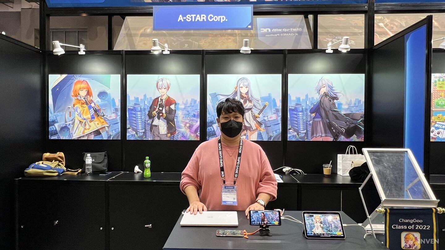 = 에이스타코퍼레이션의 임성균 대표다. 회사는 2019년 8월에 설립한 이후 현재 25명 정도가 서브컬쳐 모바일 게임 ‘언라이트 크로니클’을 개발하고 있다. 작년 구글 창구 프로그램에도 선정됐고, 올해는 운이 좋게 한국게임산업협회와 콘텐츠진흥원 등 여러 곳에서 추천해줘서 타이베이 게임쇼에 올 수 있었다.