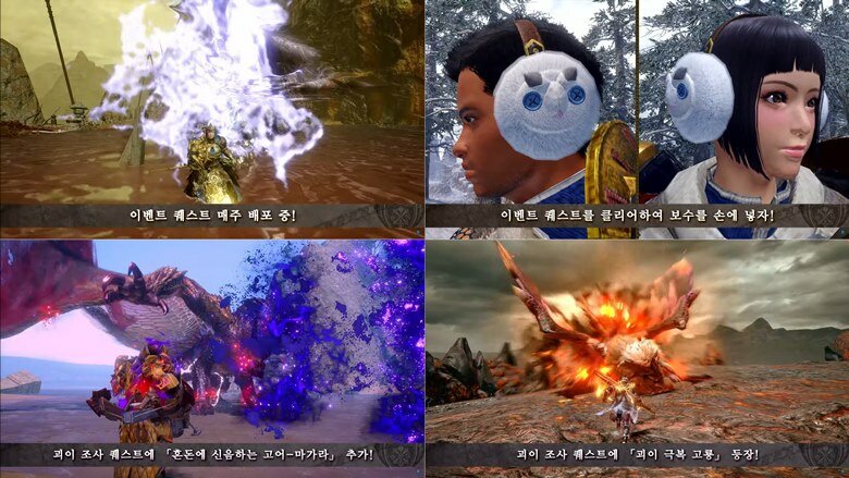 새로운 이벤트 퀘스트도 배포된다. 고난이도 흉쌍내습 퀘스트는 ‘홍련의 솟구치는 바젤기우스’와 ‘혼돈에 신음하는 고어-마가라’의 동시 사냥 퀘스트가 추가되고, 해당 퀘스트를 통해 귀여운 귀마개 장비를 만들 수 있을 것으로 예측된다. 또한 ‘격앙 라잔’과 ‘원망 서린 마가이마가도’의 격투장에서 동시 사냥 퀘스트도 배포될 예정이다.