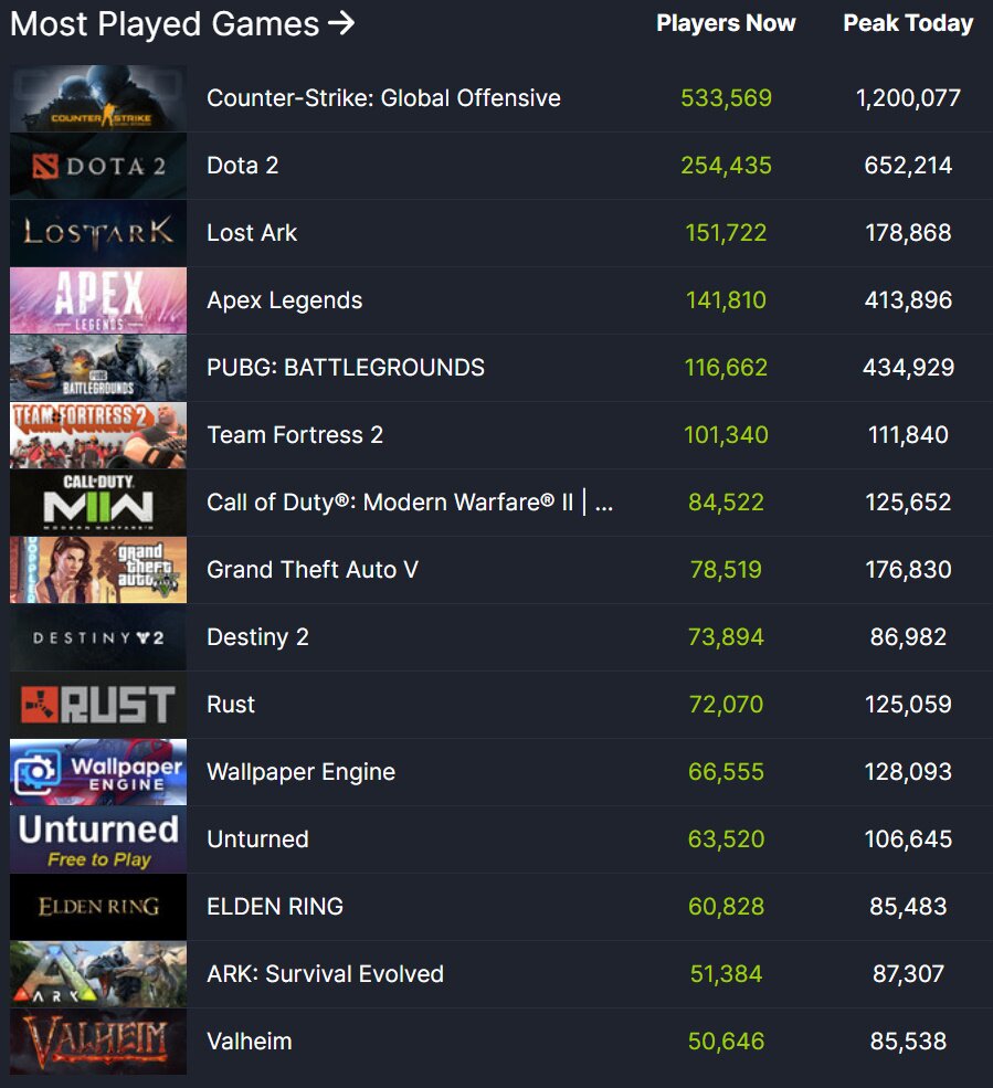 – 최근 신작들의 개발 취소 또는 연기 소식이 연이어 들려오고 있는 유비소프트의 과거 게임들이 트렌드 차트에 재진입했습니다. 각 게임들은 높은 폭으로 할인을 진행중으로, 스팀DB 트렌드 차트 세 번째에 위치한 고스트 리콘 브레이크포인트 같은 경우 약 80% 할인된 가격에 구매가 가능합니다.