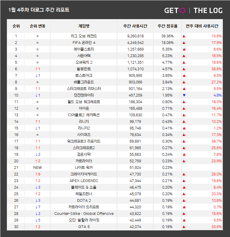 ■ 국내 PC방 순위 – 1월 4주 PC방 주간 리포트