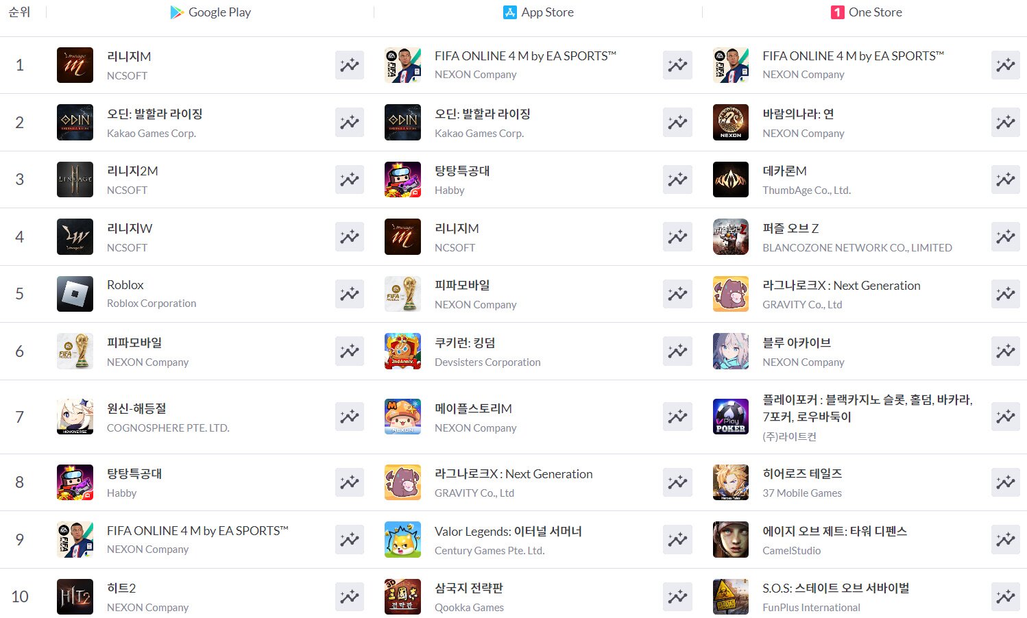 ■ 국내 모바일 게임 순위
