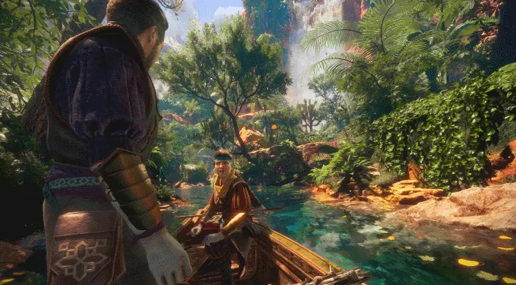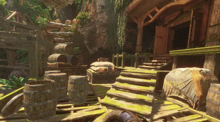아름다운 비주얼에 눈이 즐거운 것과 동시에, 흐르는 계곡물에 손을 넣어보거나 주변에 놓여있는 사물들과 자유롭게 상호작용할 수 있는 것도 재미 포인트였다. 세계관을 만끽할 수 있는 기본 스토리 줄기 외에도 상자 위에 놓여있는 과일을 집어서 먹거나 붓과 염료로 벽에 그림을 그리고, 악기를 쥐고 연주하는 등 VR에서만 느낄 수 있는 ‘상호작용의 재미’ 요소가 곳곳에 배치되어 자유롭게 세상을 돌아보는 재미를 함께 맛볼 수 있는 것이 특징이다.