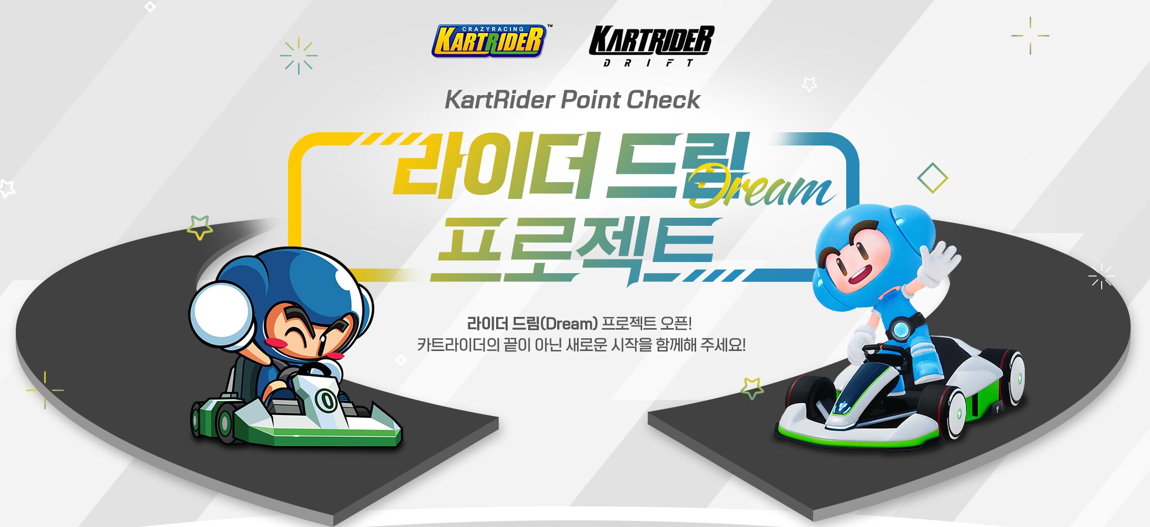 지난 12일 시작된 ‘라이더 드림(Dream) 프로젝트’는 그동안 ‘카트라이더’와 함께한 유저들에게 여러가지 혜택을 돌려주는 이벤트다. 플레이 시간과 보유 아이템 등 원작에서의 기록을 바탕으로 레이서 포인트를 산정해 제공하여, 추후 ‘카트라이더: 드리프트’ 내 게임 아이템 등으로 교환할 수 있게 지원하는 방식이다.