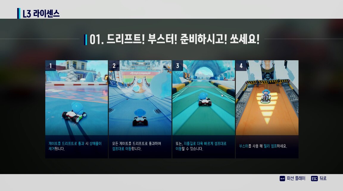 전작과 또다른 작품 ‘카트라이더 러쉬플러스’에서도 이런 문제를 해결하기 위해서 ‘라이센스’라는 제도를 도입했고, 이건 카트라이더: 드리프트에서도 동일합니다. 아이템의 사용 방법이나 아이템의 기능부터 카트라이더 특유의 주법까지 라이센스로 묶어서 유저들이 얼마나 숙달됐나 확인할 수 있게끔 한 것이죠.