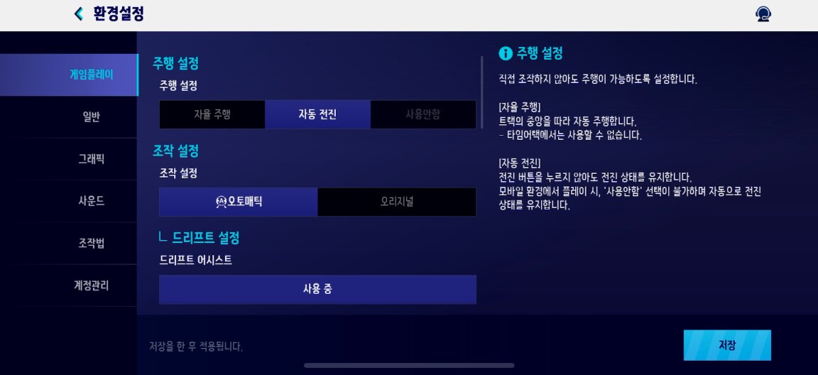 이를 해결하기 위한 개발진의 선택은 관련 옵션을 더욱 디테일하게 나누는 것이었습니다. 단순히 드리프트 어시스트 이런 식으로 두는 것이 아니라 코스 가이드 라인이나 착지 지점 표시, 순간 부스터 발동 가능 표시에 모바일 환경에서 순간 부스터 기능 자동 온/오프 등으로 세분화한 것이죠. 드리프트 어시스트도 이전에는 초보 티를 조금만 벗어도 아예 안 쓰게 될 정도로 시험적인 기능이었지만, 이제는 오토매틱 조작 설정의 디테일한 보조 기능까지 어우러져서 초보존에서는 무난하게 써먹을 정도까지는 끌어올렸습니다. 다만 모바일이나 태블릿에서 컨트롤러가 100% 지원하지 않는 구조라서 아이패드로는 플레이하기가 좀 애매했다는 아쉬움은 있습니다.