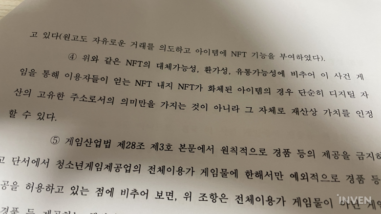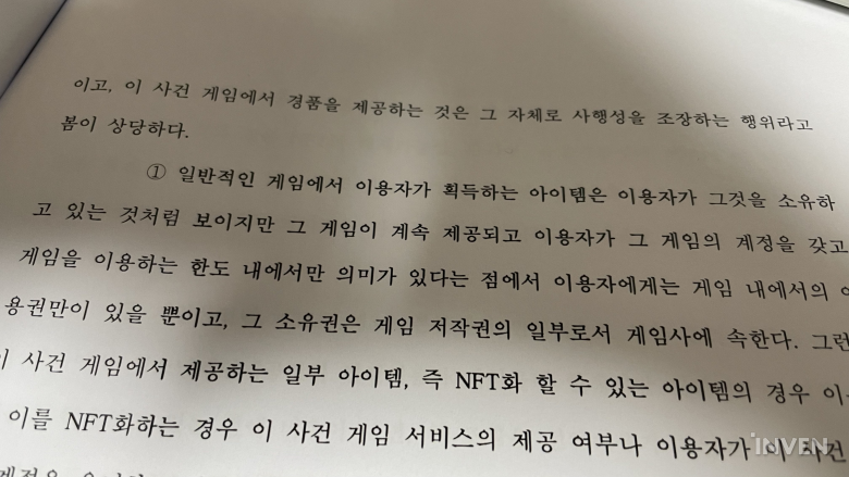 법원이 NFT화 할 수 있는 아이템은 게임산업법이 금지하는 경품에 해당한다고 처음 판단한 것으로 16일 확인됐다. 게임이 경품을 제공하는 것은 그 자체로 사행성을 조장하는 행위로 해석되어 금지된다.