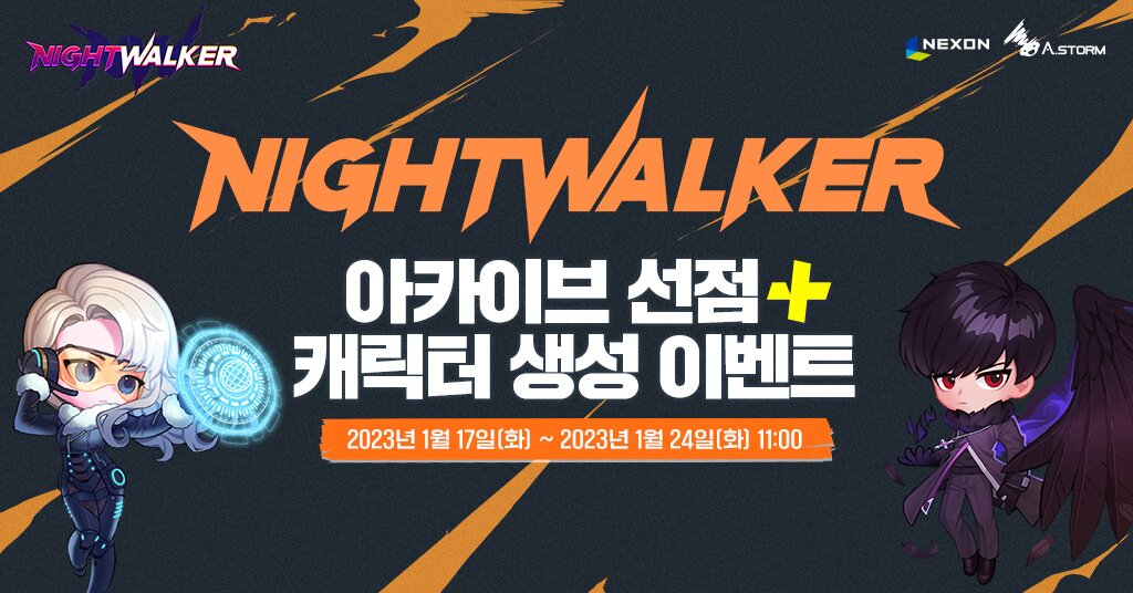넥슨(대표 이정헌)은 에이스톰(대표 김윤종)에서 개발 중인 신규 액션 MORPG ‘나이트 워커(Night Walker)’를 오는 1월 26일 정식 출시한다고 밝혔다.