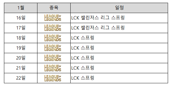 ■ 이 주의 국내 e스포츠 일정