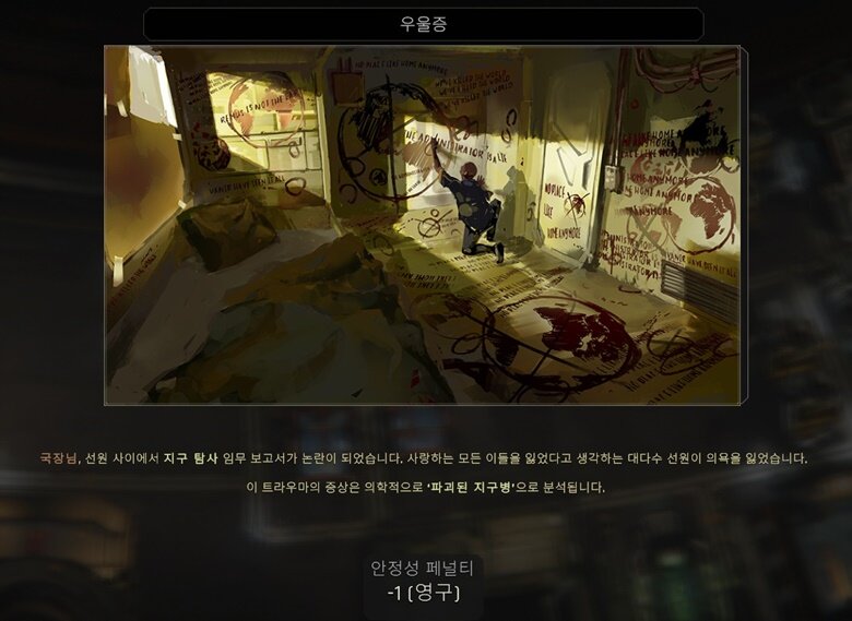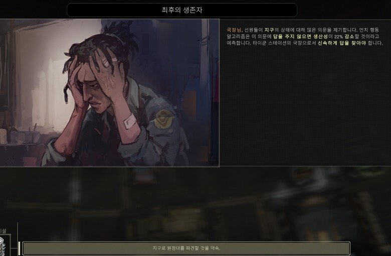 바지사장에 불과하던 플레이어는 윗선이 통으로 날아가버리는 대형 사고의 여파로 뜬금 인류의 미래를 책임져야 하는 상황이 되었고, 남은 거라곤 퀀텀 점프의 여파로 너덜거리는 우주 정거장 하나가 전부죠. 평양 감사도 제 싫다면 그만이지만, 플레이어는 도망갈 구석도 없습니다. 우주에 남은 인류가 없는데 어디로 가겠습니까. 울며 겨자먹기로 이 정거장을 굴리며 인류의 미래를 설계할 수 밖에요.