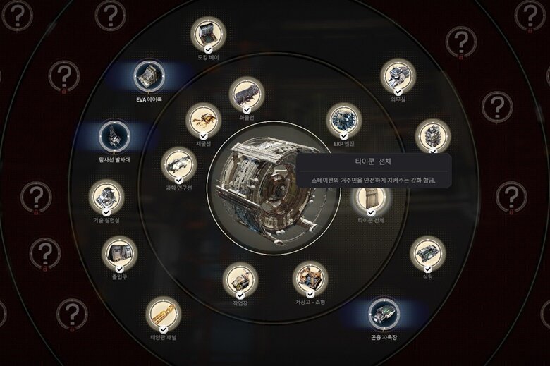 개괄적인 설명이 끝났으니 보다 구체적으로 게임을 살펴 봅시다. 우주 정거장 ‘타이쿤’은 총 6개의 섹터로 이뤄집니다. 최초엔 하나의 섹터만 개방되어 있으며, 하나의 섹터에 수용 가능한 인구와 시설은 매우 한정적이다 보니 조금씩 새로운 구역을 열면서 정거장을 성장시켜야 하죠.